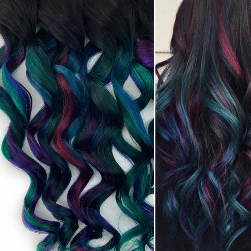 Oil Slick Hair Extensions Oil Slick Hair Color Teal Purple Etsy